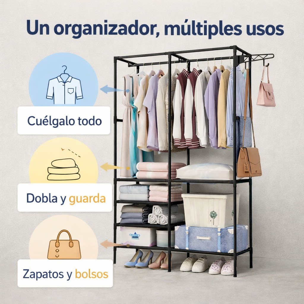 👉 El problema real es que no tienes un sistema práctico para organizar tu ropa y tus zapatos en un solo lugar.
