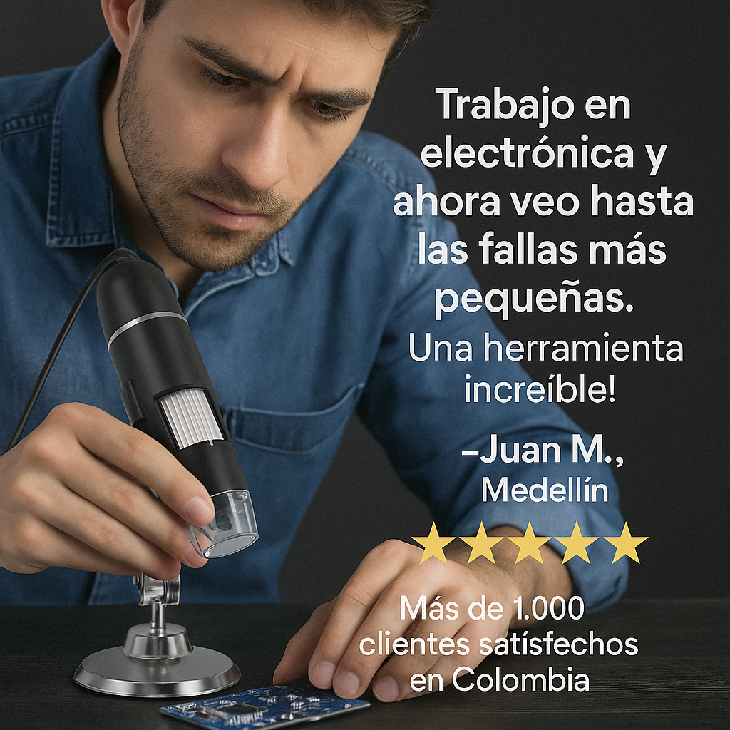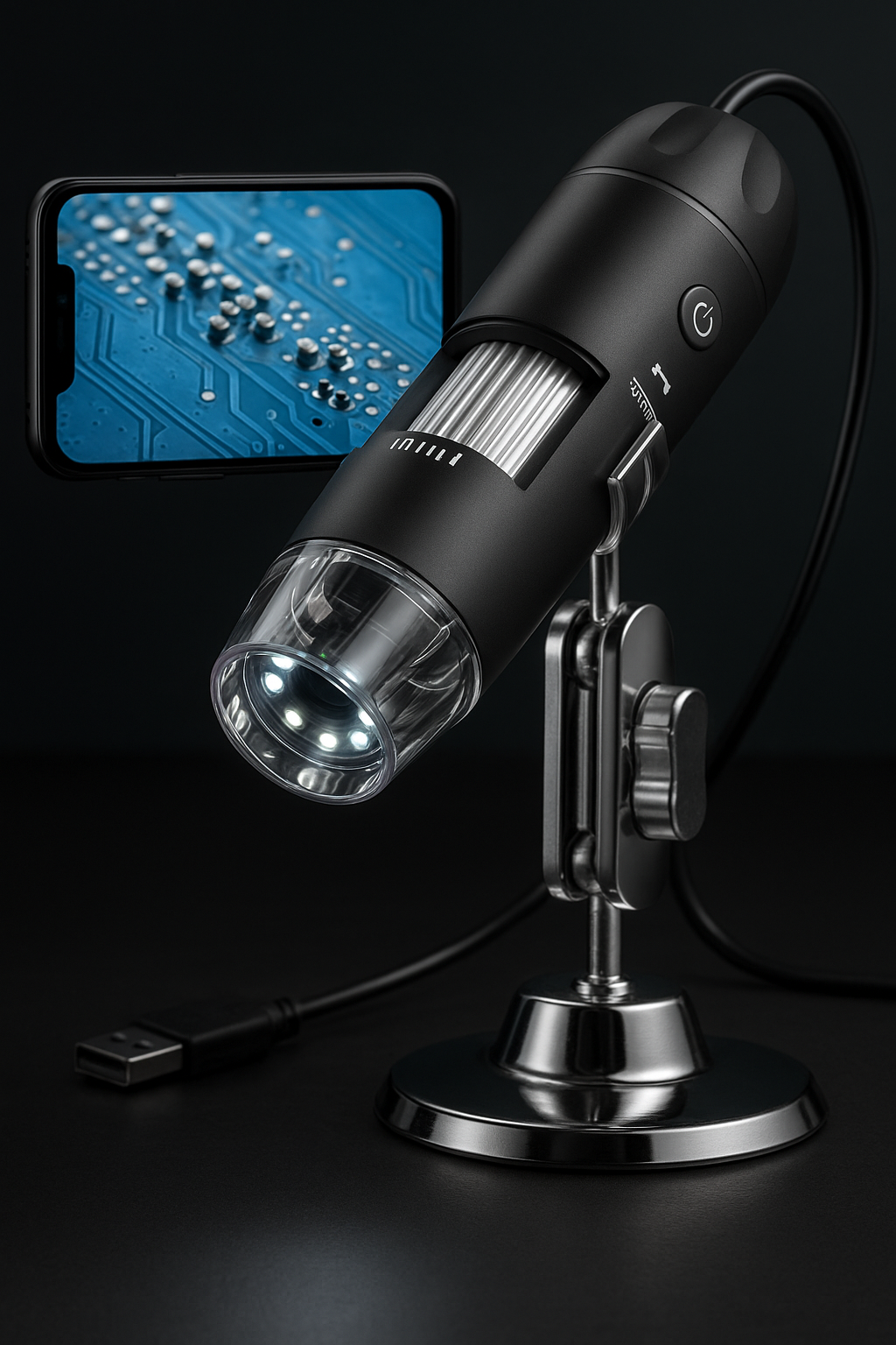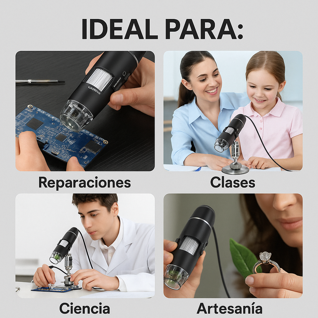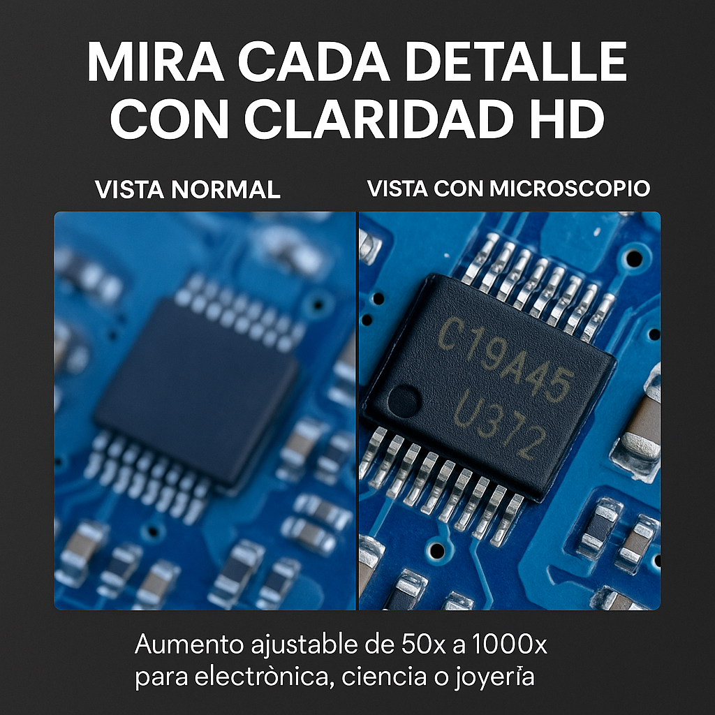 ¡Sí! 🔧 Está diseñado justamente para eso. Permite ver con gran claridad microcomponentes, soldaduras, cables o fallas en tarjetas electrónicas, algo imposible con la vista normal o una lupa.