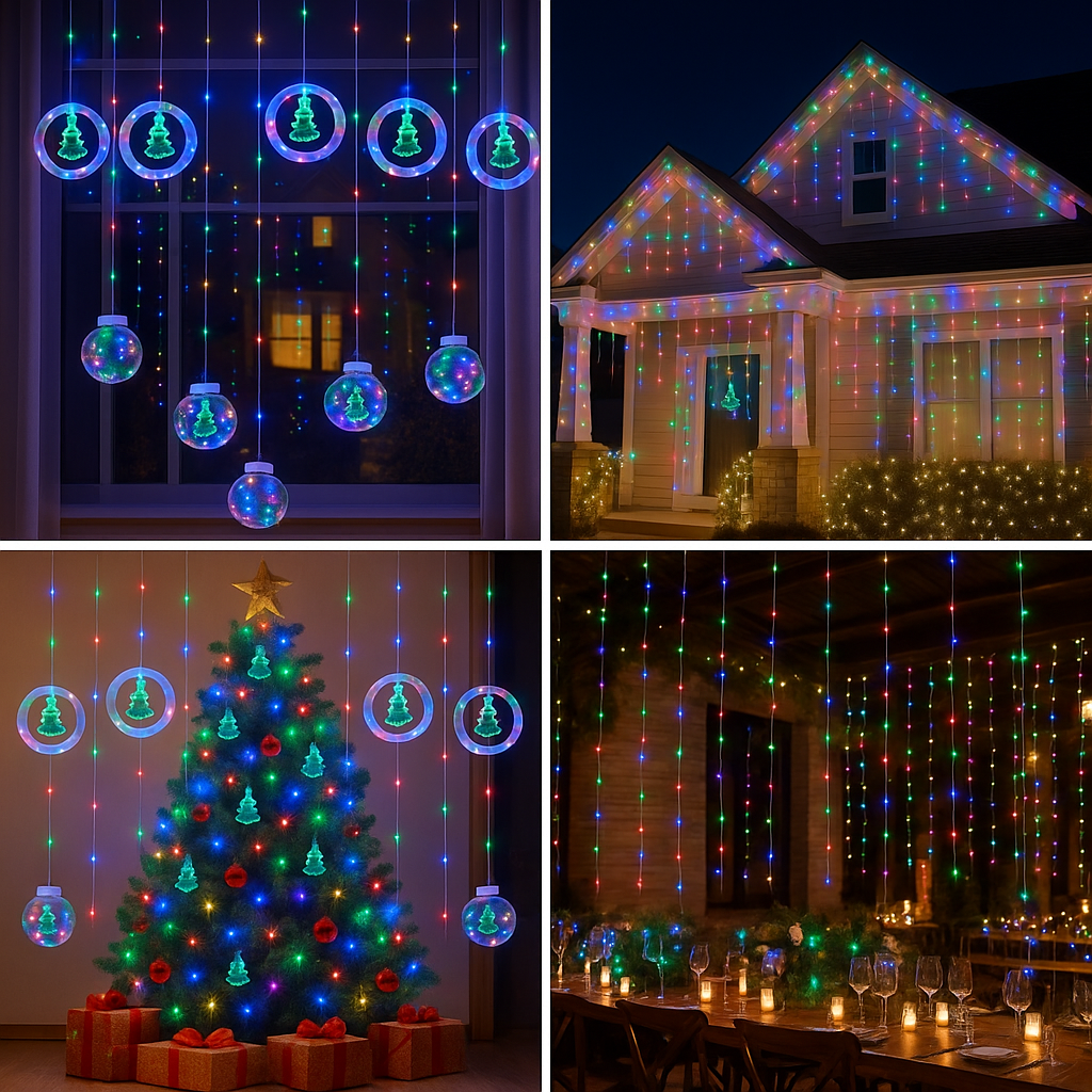 La cascada LED se conecta directamente a un enchufe convencional de 110 V, compatible con todas las tomas estándar en Colombia. Solo debes colgarla, enchufarla y estará lista para iluminar tus espacios.