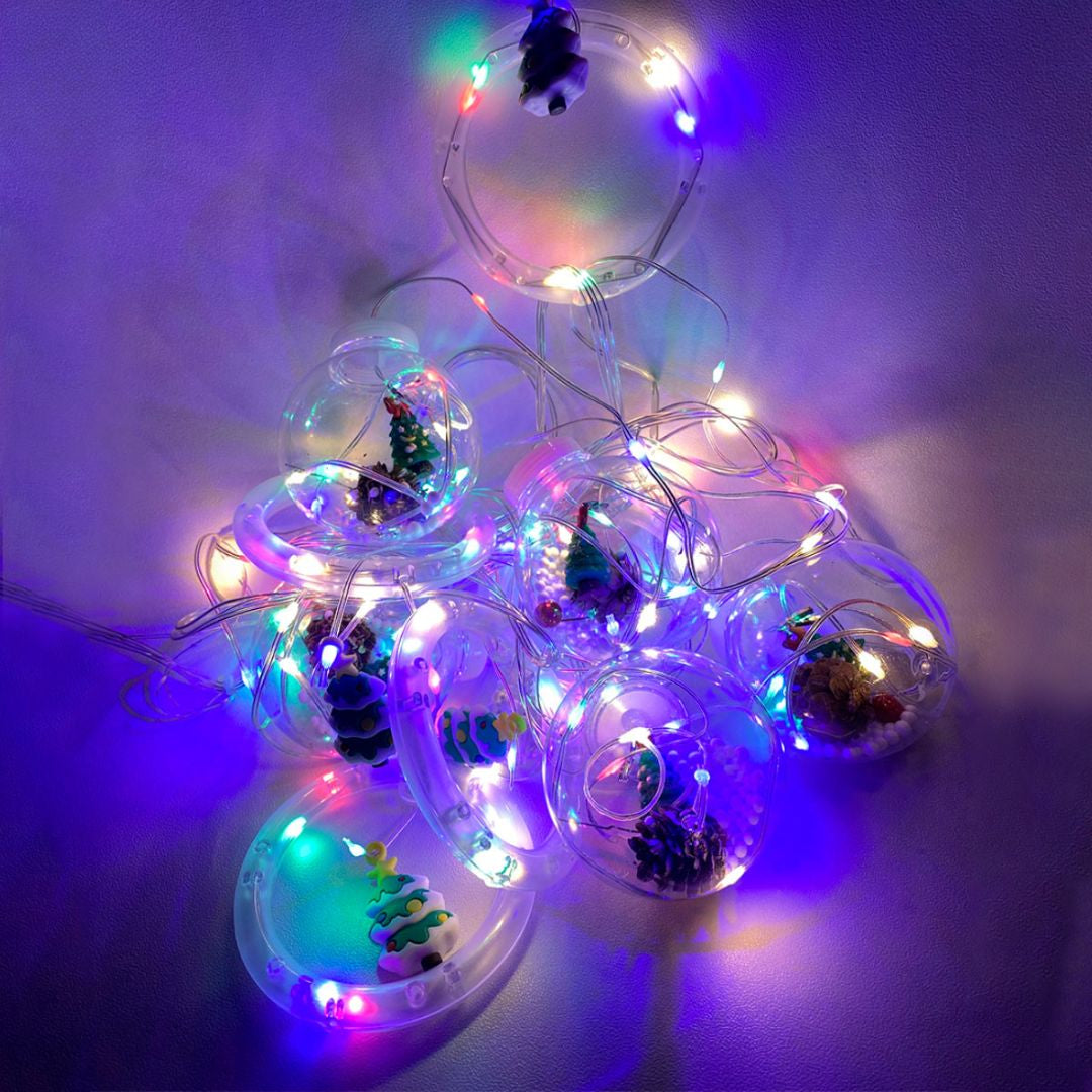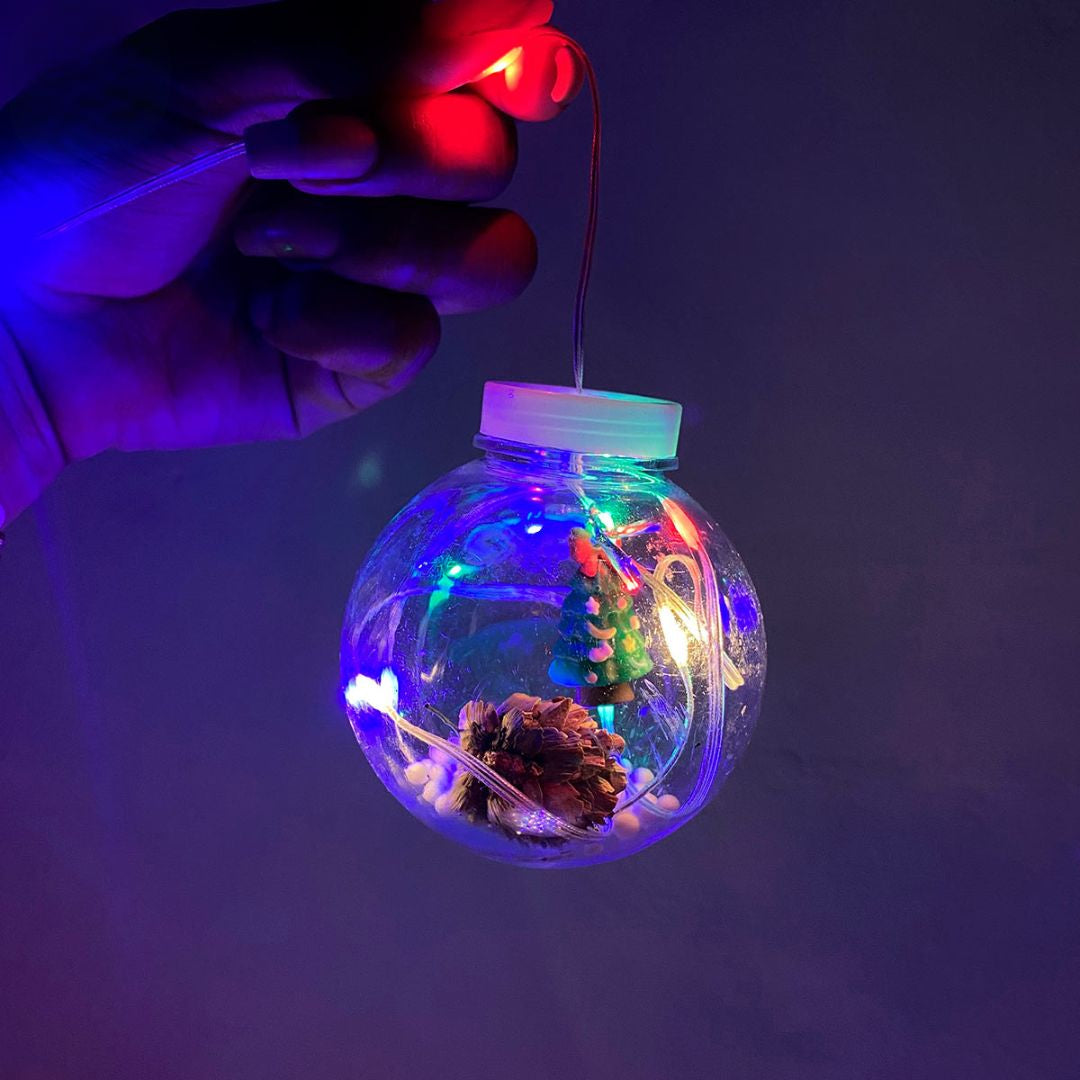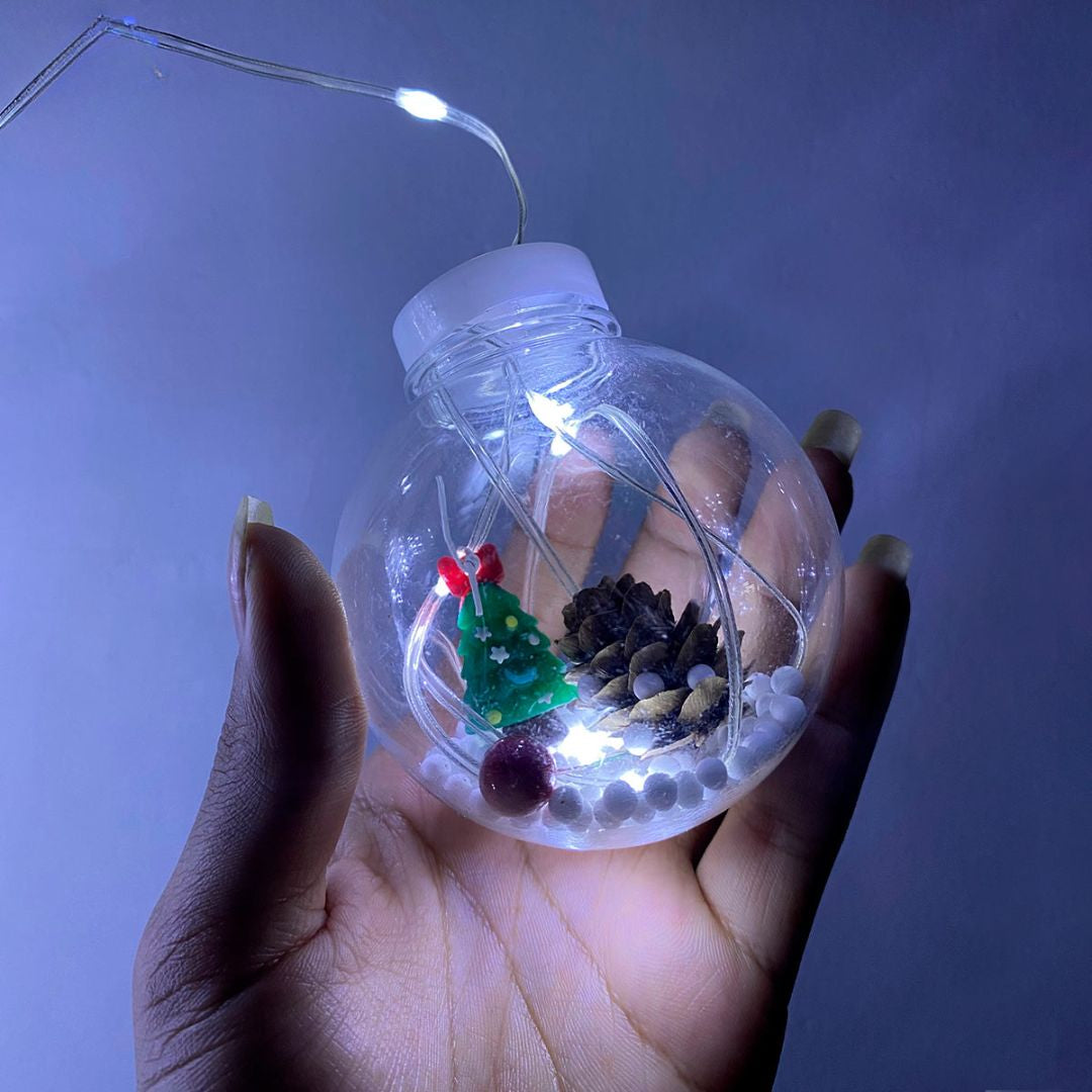 Aros y esferas decorativas con mini árboles navideños en su interior