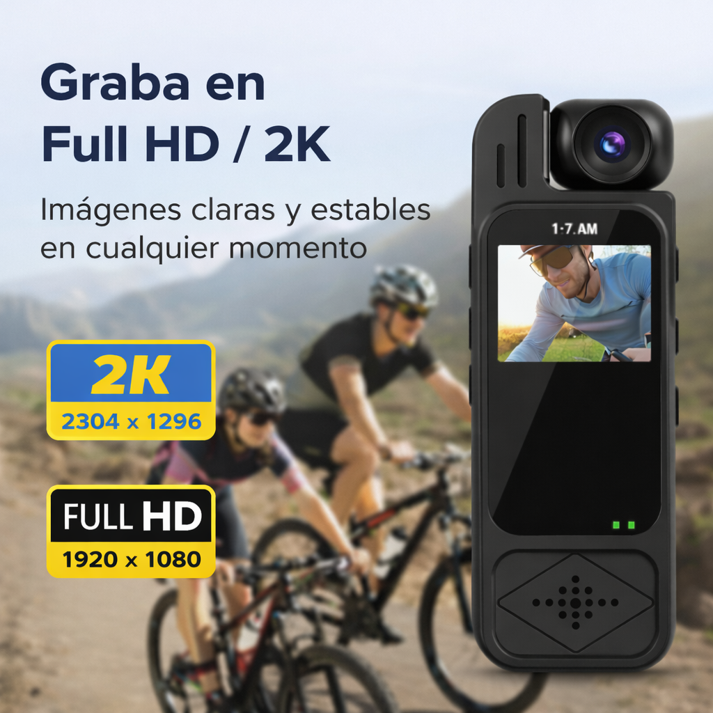 Graba en Full HD 1080p y 2K (según el modo seleccionado).
