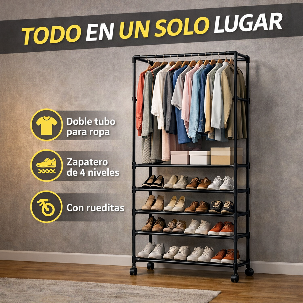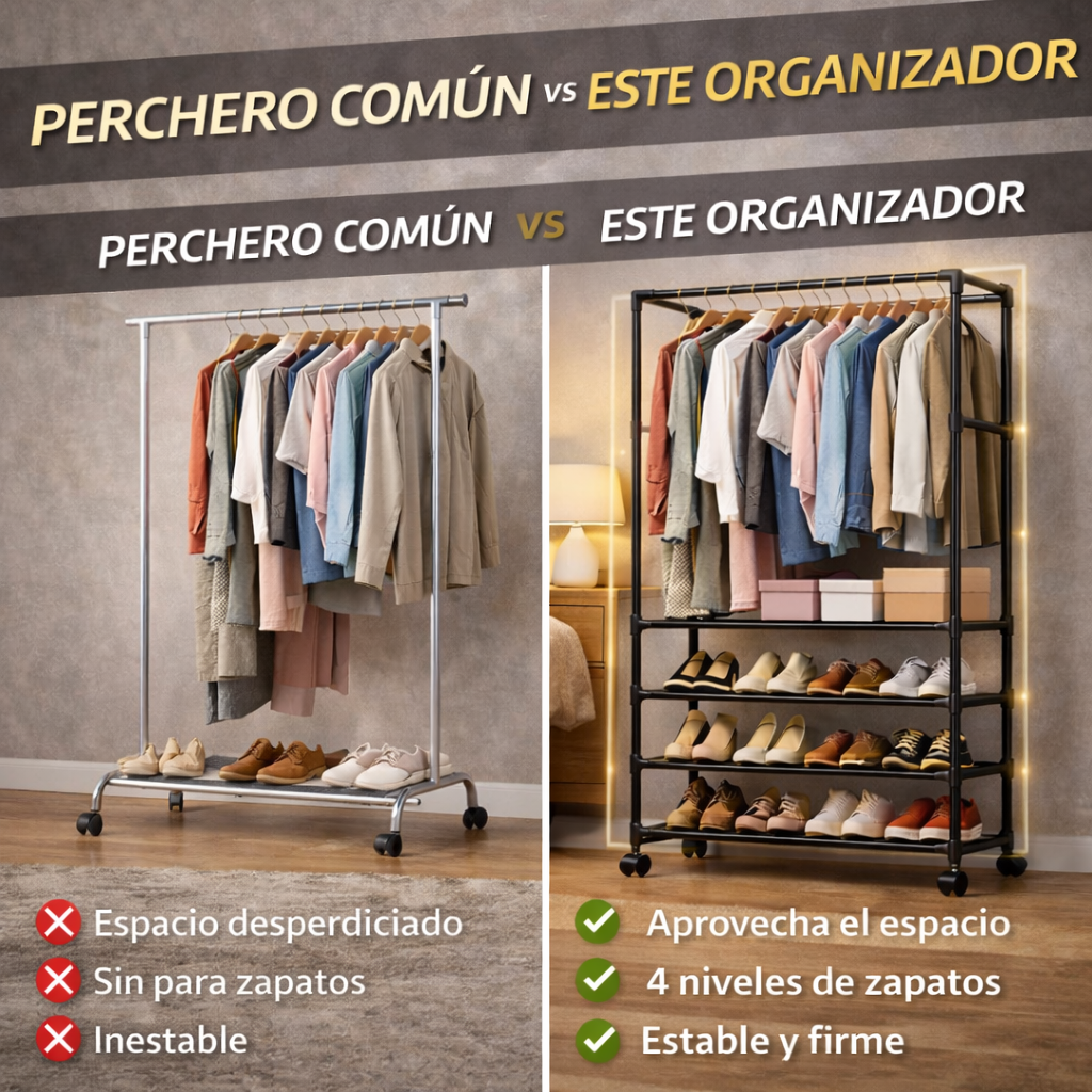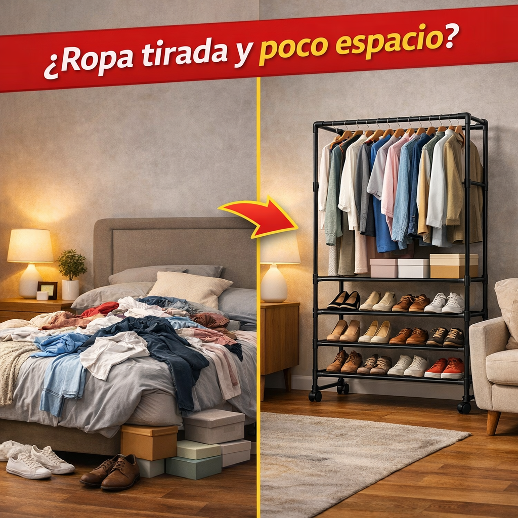 👉 Es que no tienes una solución práctica y funcional para organizar tu ropa y zapatos en poco espacio.